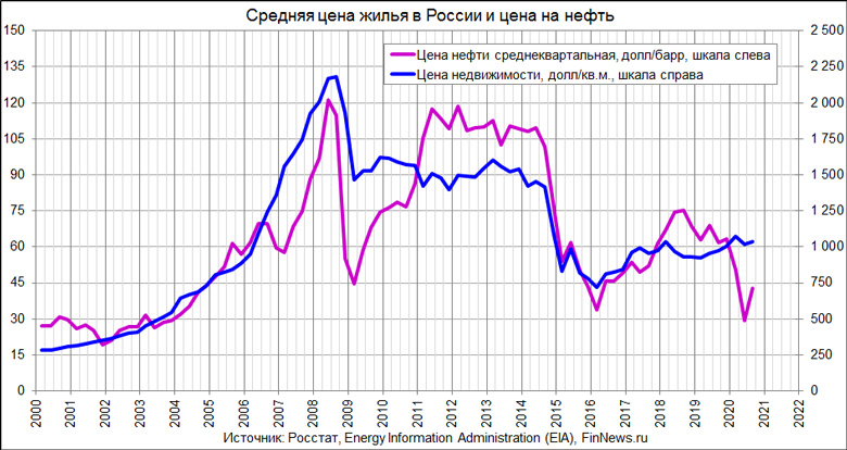 Средняя цена квадратного метра жилья в России и цена на нефть