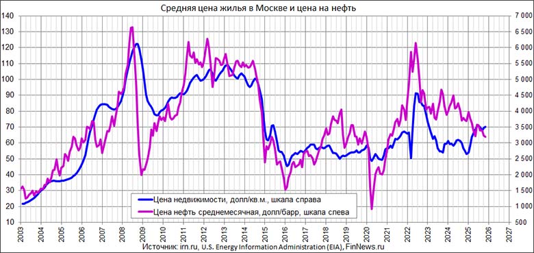 Средняя цена квадратного метра жилья в Москве и цена на нефть