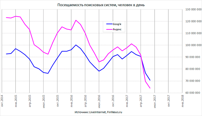 Статистика посещаемости поисковых систем в РФ